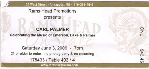 recorded tracks : Intro, Peter Gunn, Barbarian, Hoedown, Enemy God, Trilogy, LA Nights, solo medley, Romeo & Juliet, Tank, Bullfrog, Toccata, Canario,Tarkus, Fanfare incl.drum solo, Carmina Burana